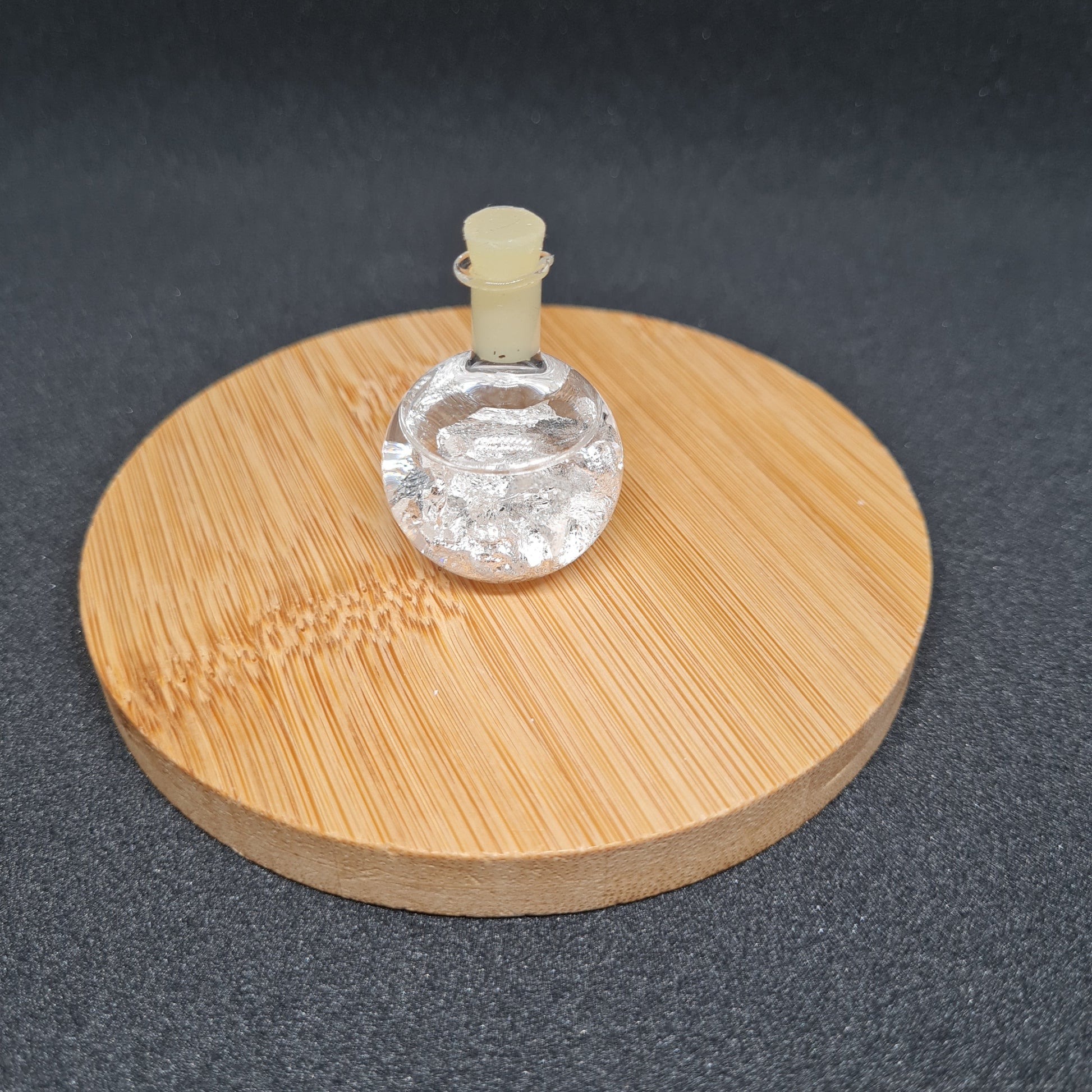 La Bouteille Ronde de Feuilles d'Argent est bien plus qu'un simple accessoire. C’est une pièce unique qui évoque l'harmonie entre la nature et l'artisanat. Fabriquée à partir de verre soufflé à la bouche, chaque bouteille possède sa propre personnalité, rendant ainsi chaque création exclusive. Cette petite merveille de 2,5 x 2,5 x 3,5 cm, pesant environ 8 grammes, est une véritable ode à l'élégance et à la beauté naturelle.